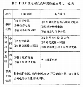 如表2所示為110kV變電站真流l川替換前后比照一覽表。替換后的直流體系滿足變電站設備對直流體系的要求。