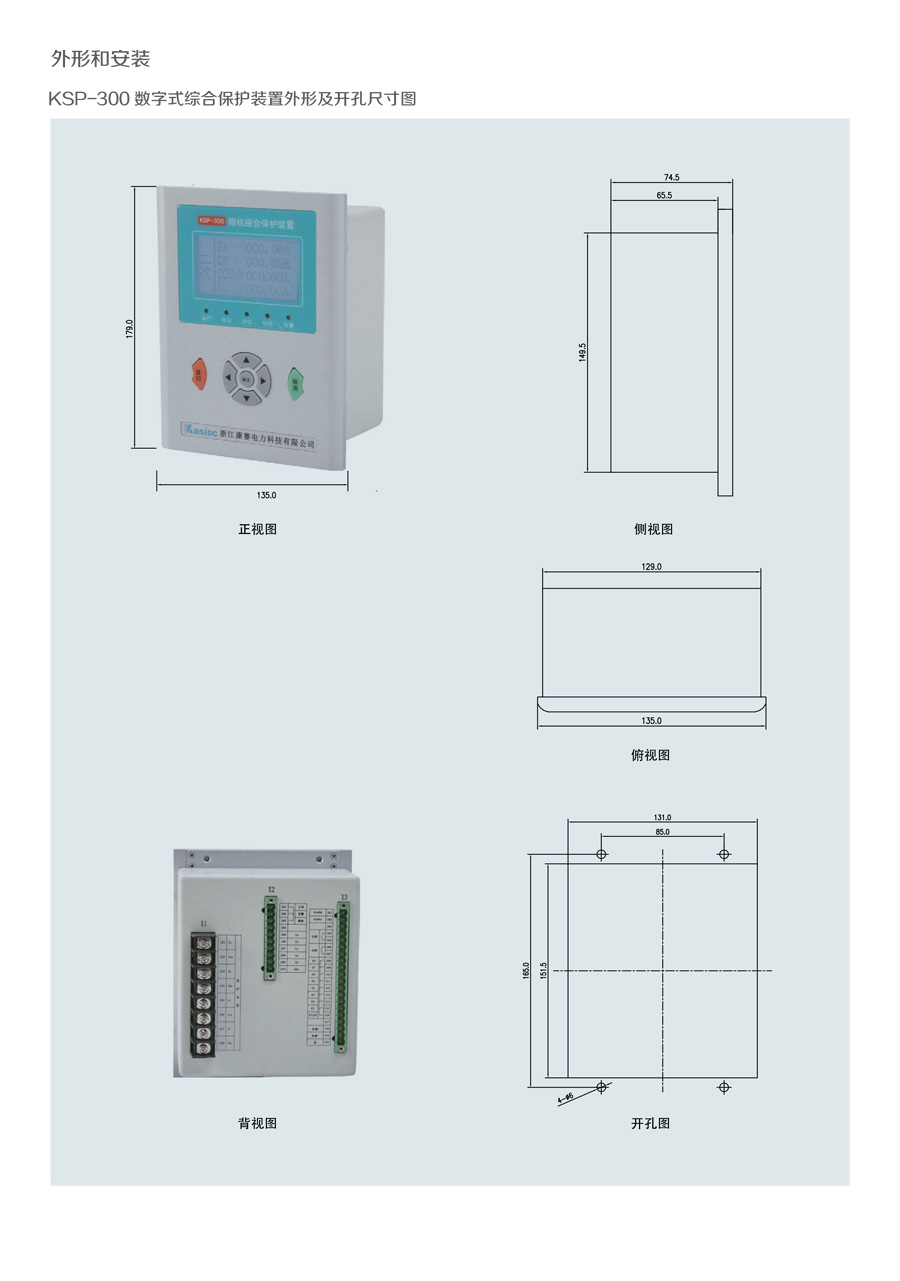 KSP-300 數(shù)字式綜合保護(hù)裝置是我公司為適應(yīng)我國電氣成套事業(yè) 發(fā) 展的需要,積累多年電力自動化產(chǎn)品開發(fā)經(jīng)驗,運用新技術(shù)、新工 藝 而推出的一款經(jīng)濟(jì)型綜合保護(hù)裝置。裝置結(jié)構(gòu)設(shè)計緊湊、體積小 巧,交 直流電源通用,可滿足 10KV 及以下電壓等級進(jìn)出線、廠用 變等保護(hù)測 控功能。